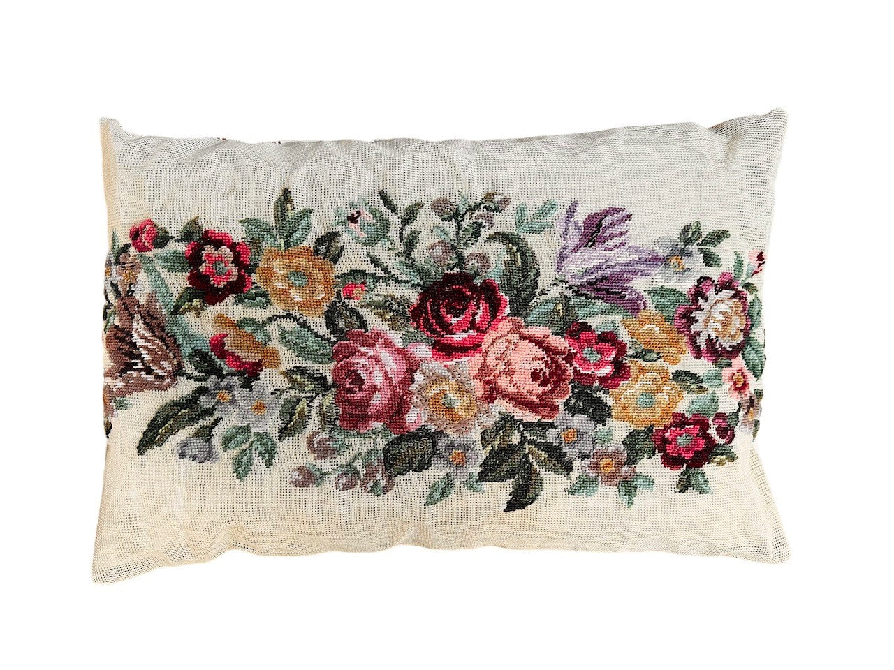 "Roses" Vintage Unfinished Tapestry and Ticking Cushion